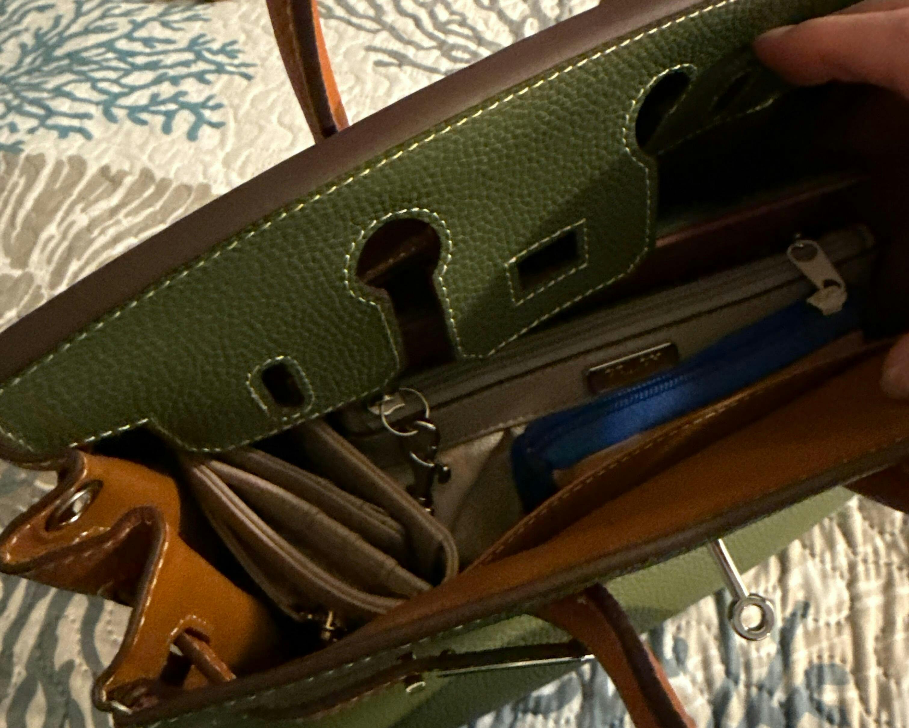 Gorgeous, absolutely gorgeous! I am in love with the bag . Beautiful colors, super soft leather too. The 25 fits my kindle, wallet, wristlet filled with misc items, my phone, sunglasses and still some room without a bulge. The clochet is a bit long for the 25 but I don’t use that or the lock and that’s the only criticism I have.