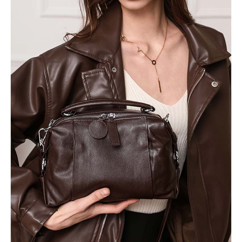 Vintage Cowhide Boston Bag | Luxury Leather Crossbody Satchel