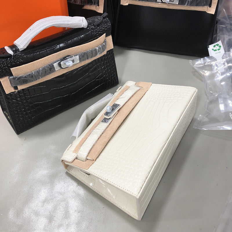 Crocodile Embossed Leather Inspired Kelli Small Chain Bag Silver Hardware