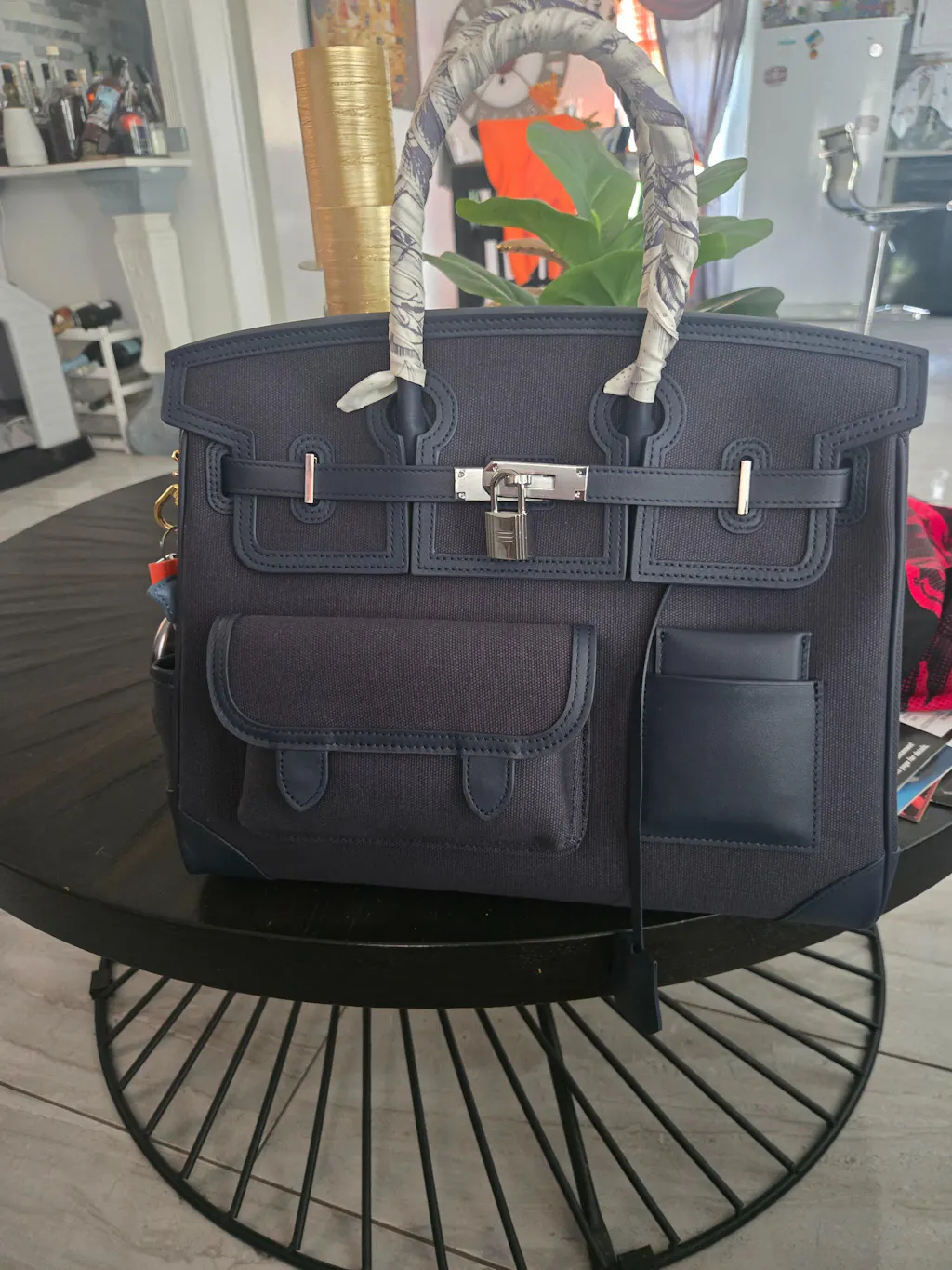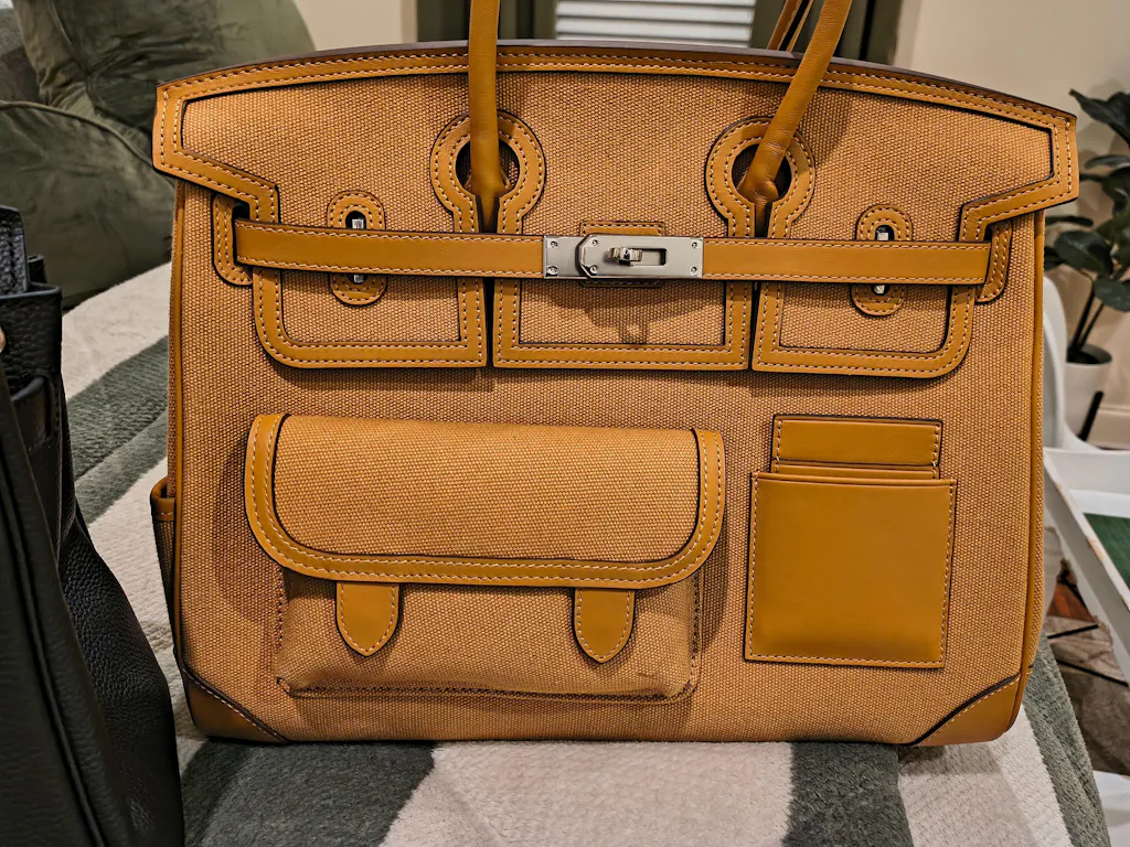 Dress it Down: Opt for a relaxed yet polished ensemble, such as a high-quality knit top, comfortable chinos, and loafers. The Cargo Berkin 35, with its blend of Swift leather and canvas, adds a refined yet approachable touch to an everyday look, perfect for a day in the city, informal business meetings, or leisurely weekend activities.
