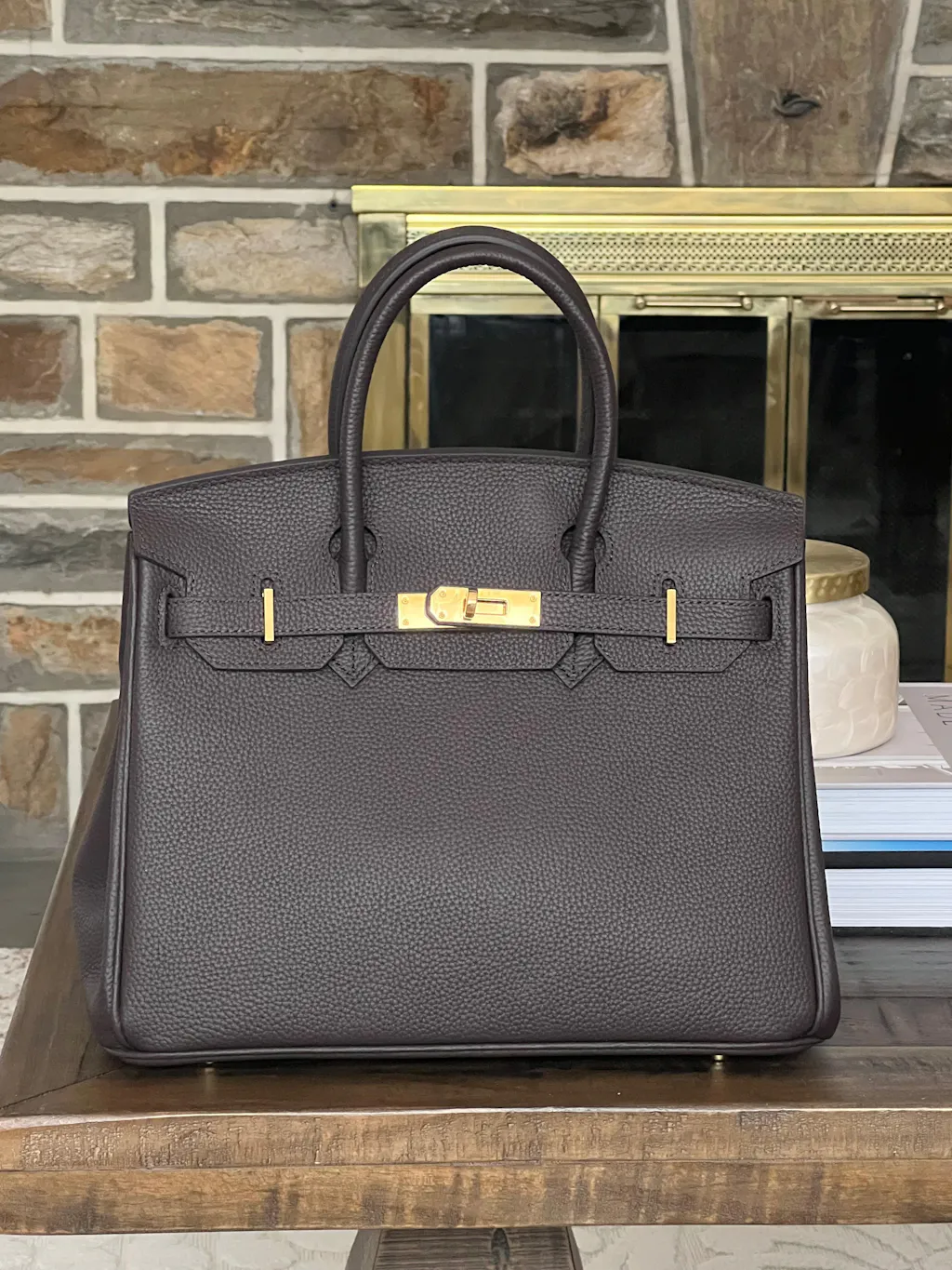 Top Grain Leather Inspired Berkin Handbag Golden Hardware | Automatic 20% OFF at Checkout