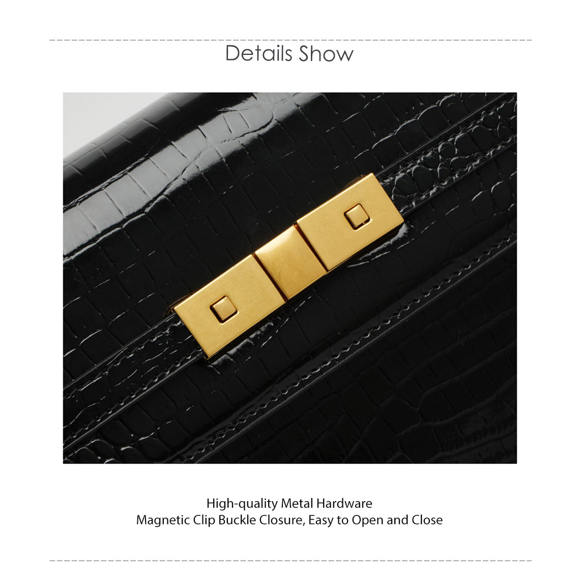 Crafted from sleek leather/crocodile embossed leather and finished with gold-tone details for a decadent aethetic, this is a timeless bag for metropolitan city girls.