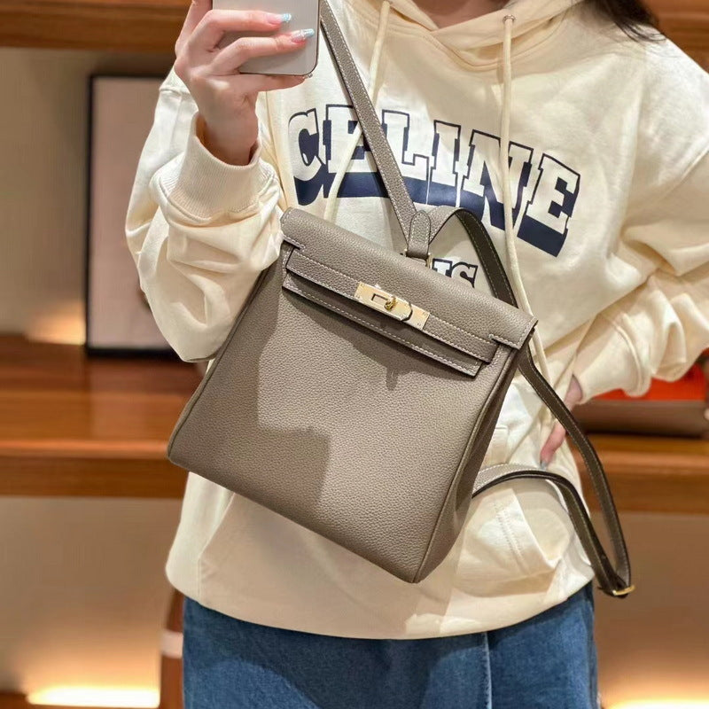 We exclusively use pebbled top grain leather to make this inspired leather Kelli backpack for women. This kind of leather is great quality real leather and is strong for years usage. To take care of leather products, please avoid direct sunlight, water and any harsh chemicals.