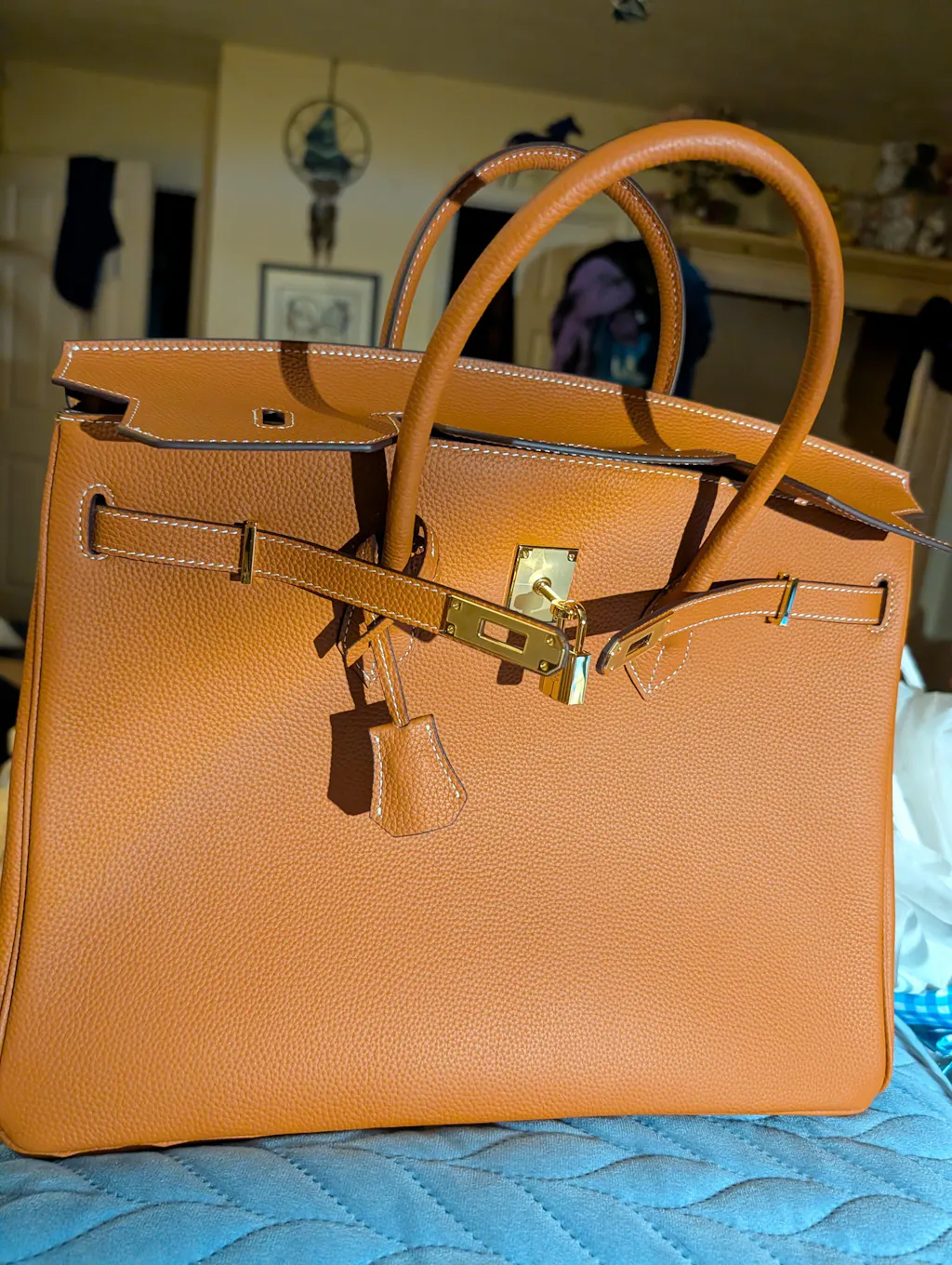 I bought the black inspired birkin in 40 cm with gold hardware and its absolutely gorgeous. The leather is soft. The stitching awesome. The attention to detail chefs kiss. And it doesn't have the H store logo that to me is the icing on the cake. I love the design of the birkin but the cost is a huge no go. This inspiration I can buy as many as I want in various colors and sizes with top notch leather for every season or weekday. Highly recommend handsewgift.